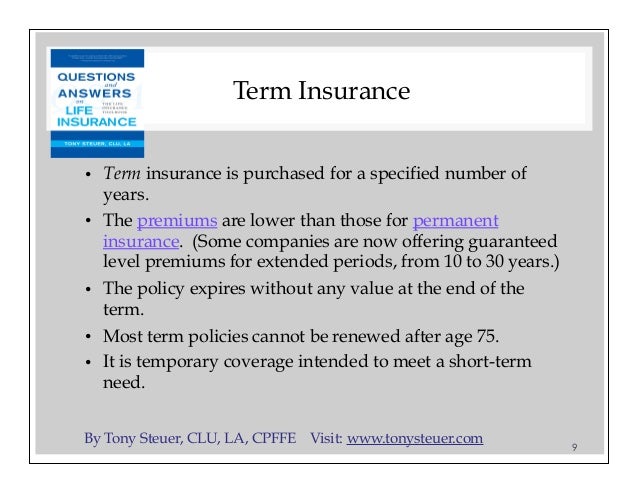 American Bar Association Section of Family Law these policies may provide for the accumulation of cash value. Term life insurance provides life insurance protection for a Term life insurance has no cash value. Some long term policies build up a small reserve for future mortality costs ... Access Document