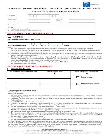 Surrender/Partial Withdrawal Request Form Policy Number: Life Assured Name: Policy Holder Name: Contact no. (Mobile) : E-mail: Address (*if any changes): ... Document Retrieval